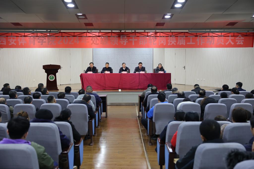 刘子实对当前我校处级干部基本构成、年龄结构、学历层次等情况进行了分析说明。他指出,干部轮岗动员大会是学校管理中的重要环节,对提升干部队伍整体素质,优化干部结构,营造干事创业的生态环境具有重要作用。就做好此次处级干部轮岗换届大会,提出三点要求:一是充分认识轮岗换届工作的重要意义。面对我校加快建成体育特色一流大学的新目标和新形势,必须紧紧依靠人才与师资队伍、干部管理队伍和保障服务队伍。其中干部管理队伍是学校治理上水平的关键所在。加快推进干部轮岗换届,既是推动学校治理体系和治理能力现代化的基础性工作,又是加强干部队伍建设的迫切需要,更是激励干部担当作为,破解改革发展难题,接续推进“双一流”建设,增强学校发展动能、实现高质量发展的内在要求。二是树立鲜明用人导向,激励担当作为。要强化以“重实干重实绩重担当”为导向的正向激励,大力选拔信念过硬、政治过硬、责任过硬、能力过硬、作风过硬的干部,把敢不敢扛事、愿不愿做事、能不能干成事作为识别干部的主要标椎,把干了什么事、干了多少事、干的事师生认可不认可作为选拔干部的重要依据。要坚持事业为上、人岗相适,以公道、公平、公心对待干部,统筹用好各年龄段干部,大力培养选拔优秀年轻干部,让整个干部队伍都有干劲、有奔头、有希望,引导干部争当实干家、行动派,为学校事业长远发展提供保障。三是认真传达学习,精心组织实施。各单位要认真研读有关方案和文件,吃透相关规定和精神,科学谋划,统筹把握,严明纪律,切实把广大干部职工的思想和行动统一到学校部署上来,统一到学校事业发展的大局上来,使广大教职工真正理解、关心、支持轮岗换届工作,保证轮岗换届工作顺利进行。要处理好日常工作和轮岗换届工作的关系,在做好轮岗换届工作同时,保证教学、科研、训练、管理和服务等工作顺利开展,做到思想不乱、工作不断、队伍不散、干劲不减。