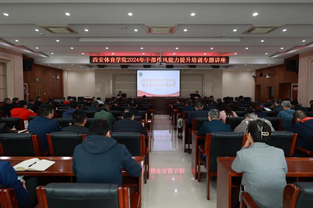 本网讯    为巩固拓展主题教育成果,持续深化干部作风能力提升,努力锻造堪当重任的高素质干部队伍,3月27日下午,我校举办干部能力提升培训专题讲座,邀请省委教育工委副书记王海波作题为《强化干部作风建设激发干部队伍活力为陕西省高等教育高质量发展提供坚实保障》的辅导报告。全体校领导、副处级以上干部参加培训。讲座由校党委书记刘子实主持。