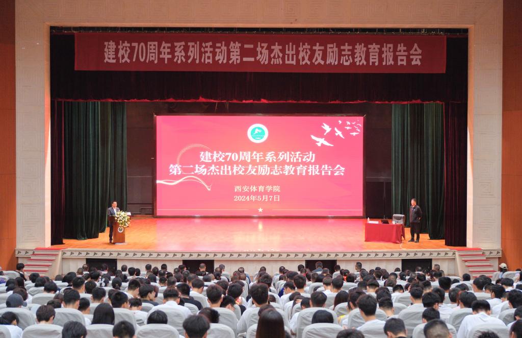 本网讯    5月7日晚,我校82届毕业校友、中学正高级教师、特级教师、国家级骨干教师、教育部跨世纪学科带头人、全国百名优秀体育教师、西北工业大学附属中学体音美教研组组长屈中乾回到母校,为师生作《奔赴热爱 育体育人》的精彩报告,这是我校建校70周年系列活动第二场杰出校友励志教育报告会。校长李富生主持报告会,党委副书记、纪委书记、监察专员杨芳乾,副校长张卫国出席,师生代表、处科级干部1400余人参加报告会。