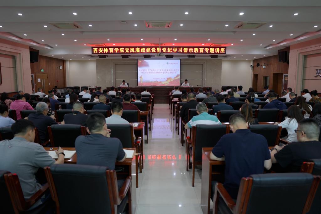 本网讯       为加强党风廉政建设,扎实推进党纪学习教育,6月18日下午,我校举行党风廉政建设暨党纪学习警示教育专题讲座。陕西省监委委员、二级高级监察官张永祥同志做了题为《深刻领悟习近平总书记关于党的自我革命的重要思想坚定不移推进高校党风廉政建设和反腐败斗争》的专题讲座。校长李富生主持讲座。省纪委第四监督检查室副主任卢刚、赵晓波参会。党委副书记、纪委书记、监察专员杨芳乾、副校长谢英、党委副书记张卫国以及副处级以上干部、机关科级干部、二级党组织纪检委员、全体纪检监察干部等到场聆听。