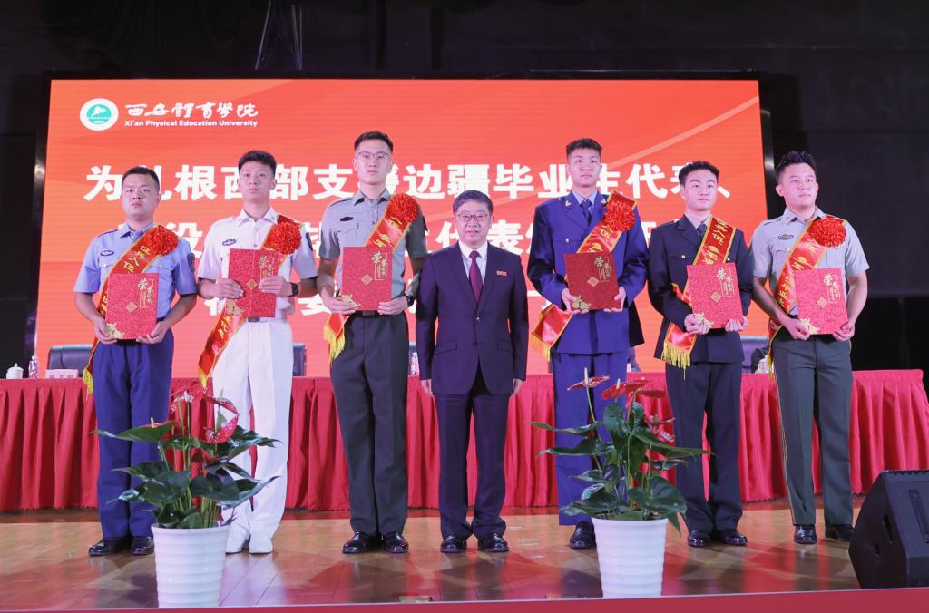 刘子实为扎根西部支援边疆及应征入伍、光荣退役毕业生代表颁发证书。