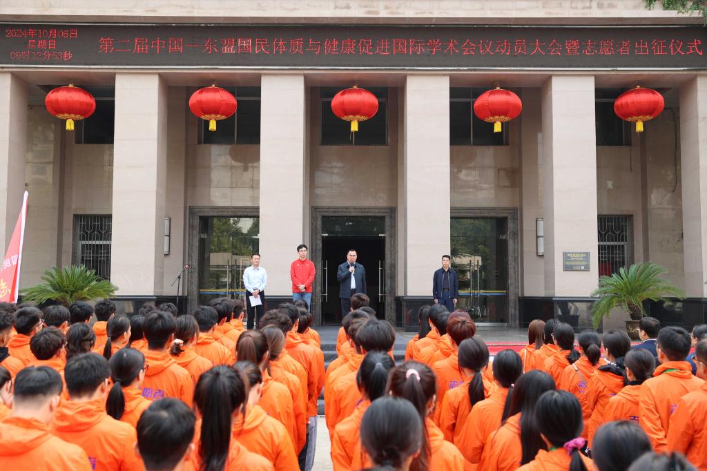 本网讯    10月6日上午,我校召开第二届中国—东盟国民体质与健康促进国际学术会议动员大会暨志愿者出征仪式,校长李富生、国民体质与科学健身研究中心副主任冯强出席,我校党委副书记马海涛主持仪式。