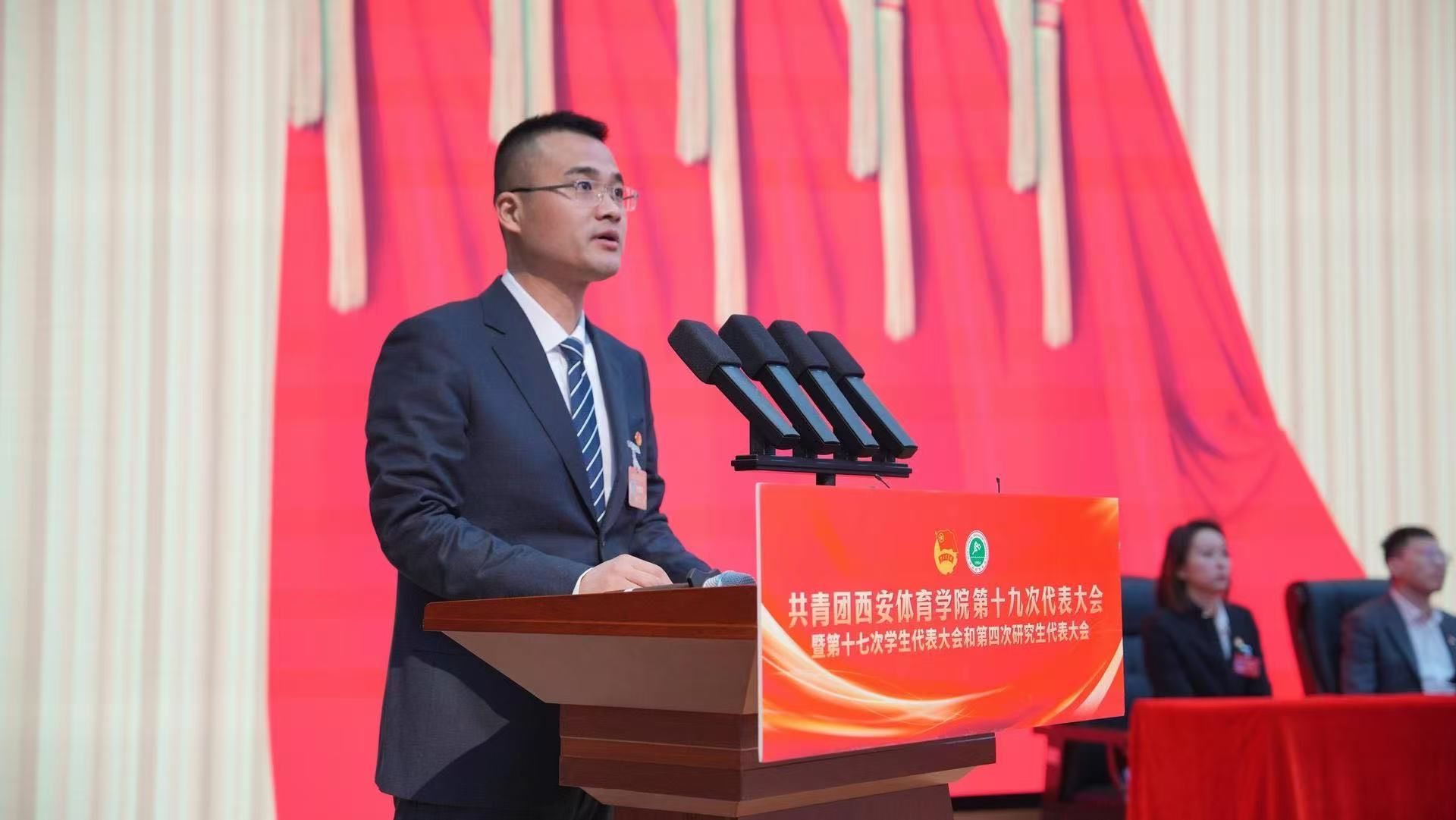 校团委书记马国华向大会做了《不忘初心跟党走,挺膺担当新征程,团结带领全校团员青年为把我校建成国内一流、国际有影响、特色鲜明的高水平教学研究型体育大学贡献青春力量》的工作报告。报告全面回顾了上届团代会的工作成就,同时深刻剖析当前我校共青团工作所面临的新形势。报告指出,未来五年我校共青团工作将紧密围绕“四个始终”的核心要求展开,旨在进一步提升共青团的组织力、引领力和服务力。一是构建“大思政”格局,始终引领青年进步之路。二是夯实基层团建基础,始终勇当改革奋进先锋。三是提升青年服务效能,始终做到让党放心、让青年满意。四是全面从严治团,始终展现清新组织形象。