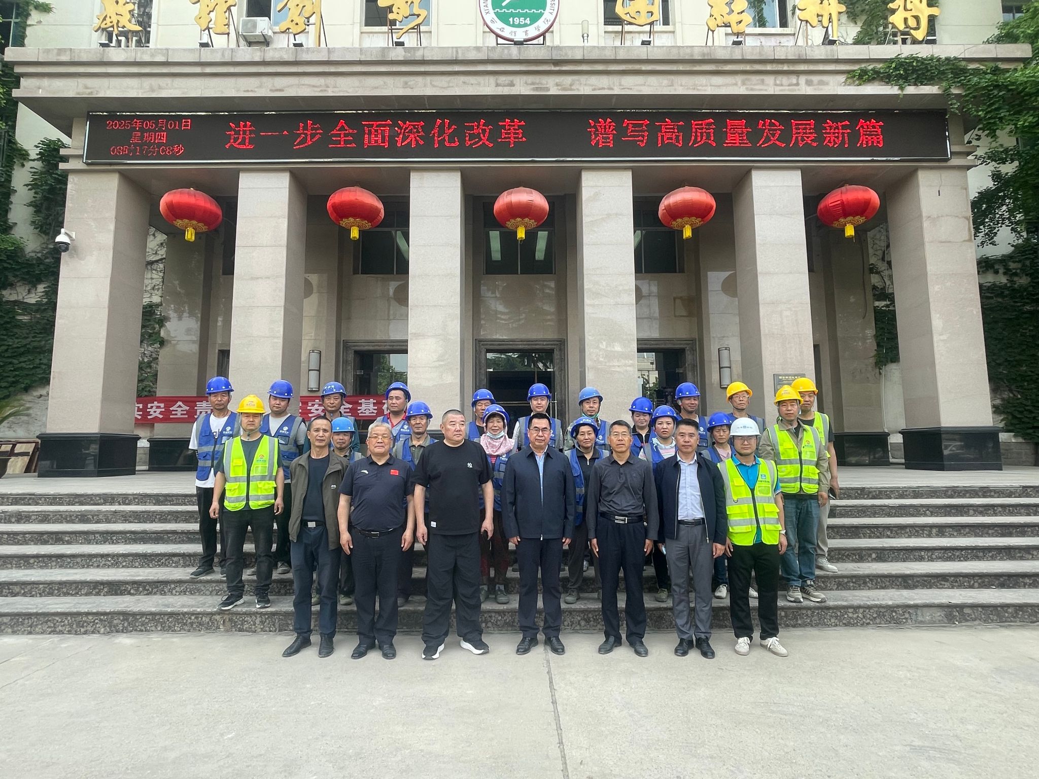 本网讯 5月1日上午,校长李富生,党委副书记、纪委书记、监察专员杨芳乾带队,在含光、鄠邑两校区看望慰问了“五一”劳动节期间仍然坚守岗位的基建一线员工,向大家致以节日的问候和诚挚的祝福,并送去慰问品。