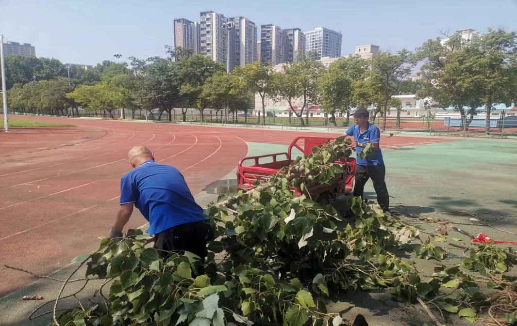 田径场断落树枝清理现场