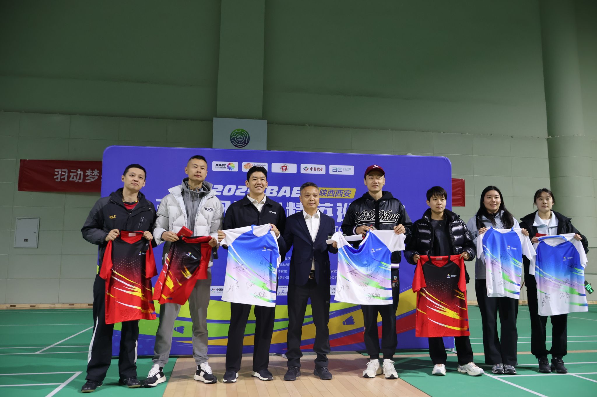 本网讯 为进一步提升我校体育运动氛围,激发广大师生的体育精神与运动热情,11月24日,我校在鄠邑校区羽毛球馆举行“羽动梦想,冠军同行——羽毛球奥运、世界冠军西体行”活动。活动邀请了2008年北京奥运会羽毛球混双冠军李龙大(韩国)、2016年里约奥运会男双冠军张楠、2015年苏迪曼杯冠军徐晨、2021年十四运羽毛球女子双打冠军杜玥、2007年香港羽毛球锦标赛男单冠军胡赟(中国香港)、2023年全国锦标赛团体冠军庄怡、2024年全国羽毛球单项冠军赛女双冠军冯雪颖7位羽毛球奥运、世界冠军莅临学校与师生交流。